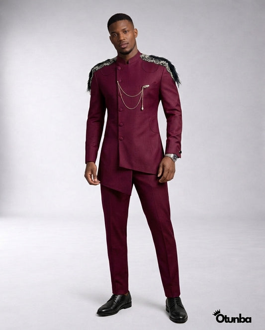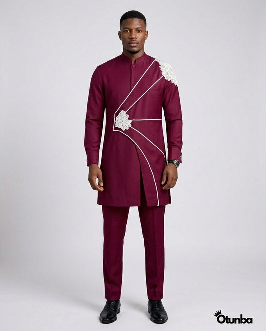 Luxury African Men Kaftan | Custom Sizing | Royal Burgundy