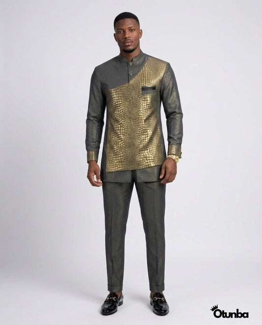 Luxury African Men Kaftan | Custom Sizing | Crocodile Pattern