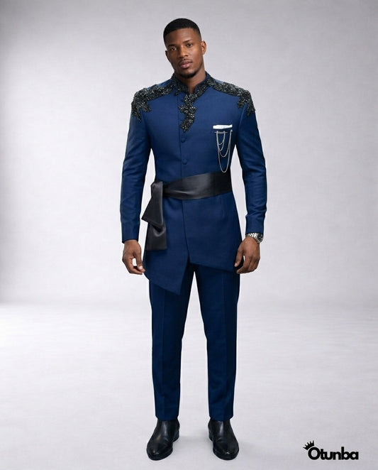 Luxury African Men Kaftan | Custom Sizing | Navy Blue