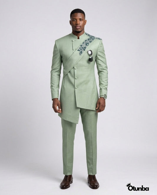 Luxury African Men Kaftan | Custom Sizing | Senator Wear | Mint Green
